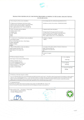 ウールやコットン、絹などの原料繊維がオーガニックであることだけではなく、繊維の収穫〜加工〜製造〜流通の全ての過程において環境的・社会的に配慮した方法が実行され、一般製品との混合や汚染がないように管理されていることの目印となっています。